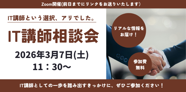 IT講師という選択、アリでした。~IT講師お仕事相談会~| 開催日 | 2025年3月7日(土) |